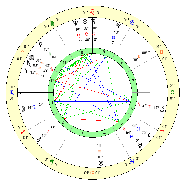 | Mercury | 0 Leo 19 | 9 Leo 12 | 4 Scorpio 15 |