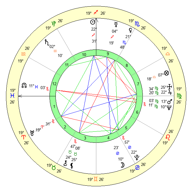 | Mars | 13 Virgo 3 | 29 Sagittarius 33 | 4 Virgo 57 |