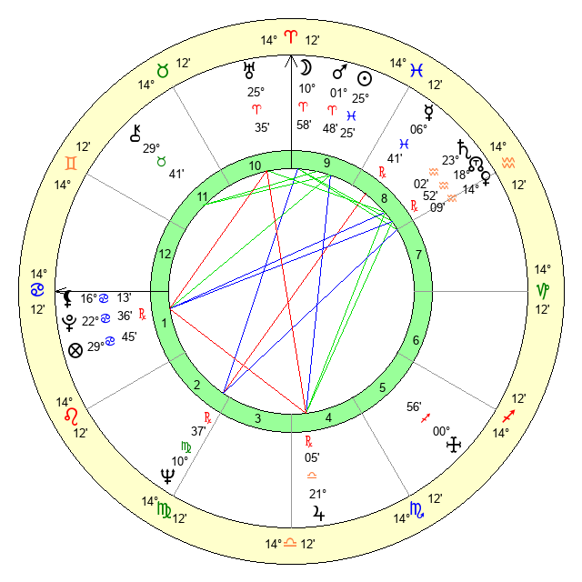 | Moon | 11 Aries 0 | 22 Libra 44 | 3 Leo 27 |