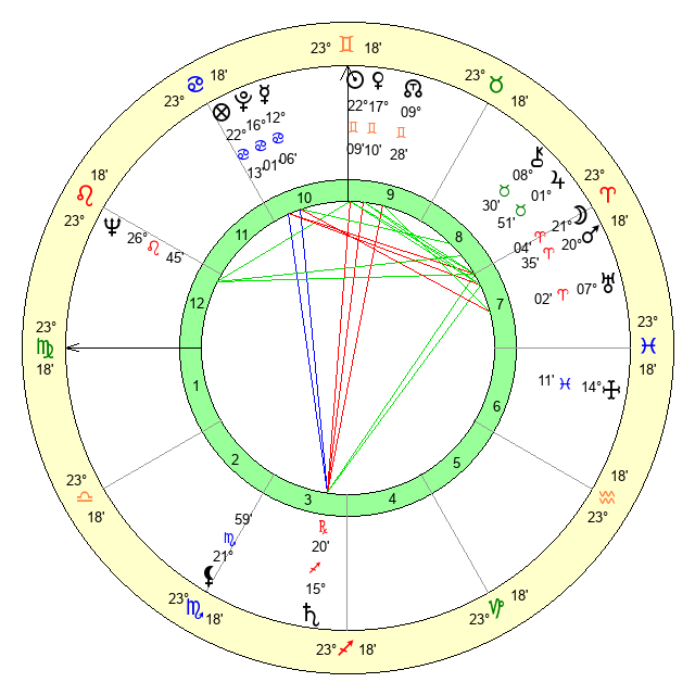| Sun | 22 Gemini 9 | 22 Gemini 41 | 25 Virgo 16 |