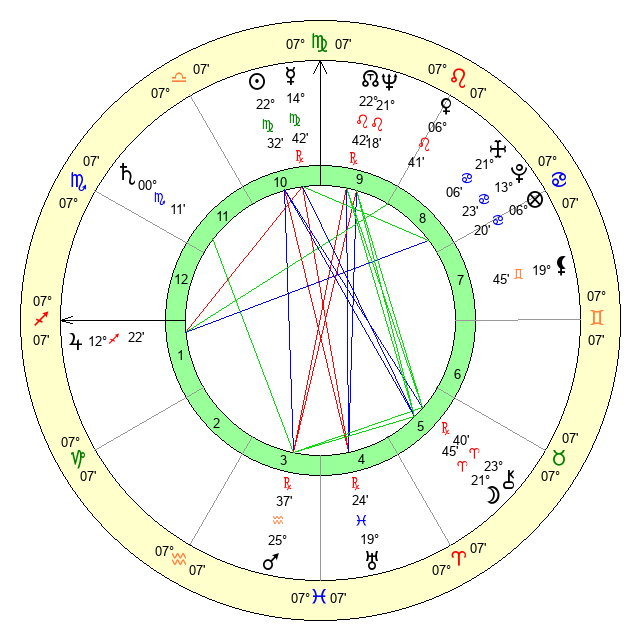 | Mercury | 14 Virgo 42 | 25 Virgo 5 | 7 Capricorn 37 |
