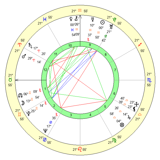 | Moon | 14 Gemini 1 | 0 Scorpio 41 | 2 Virgo 45 |