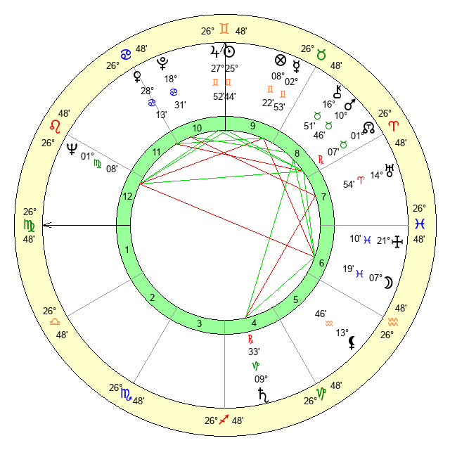 | Mercury | 2 Gemini 54 | 16 Cancer 20 | 29 Virgo 20 |