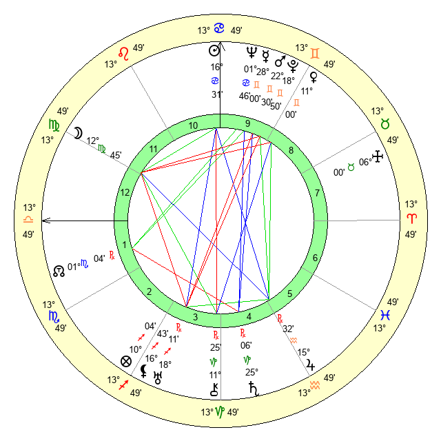 | Sun | 16 Cancer 31 | 17 Cancer 44 | 16 Scorpio 22 |