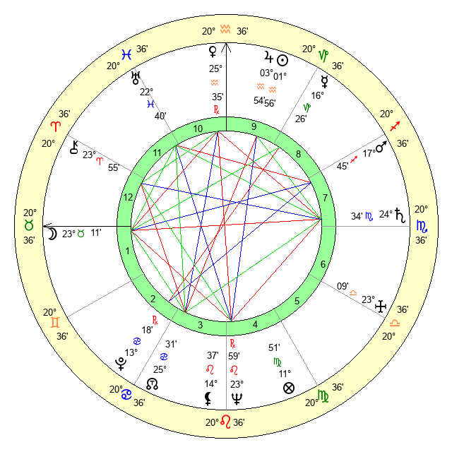 | Saturn | 25 Scorpio 3 | 16 Pisces 23 | 24 Scorpio 15 |