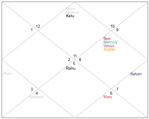 | Rahu | 7 Virgo 21 | 14 Pisces 30 | 1 Virgo 57 |