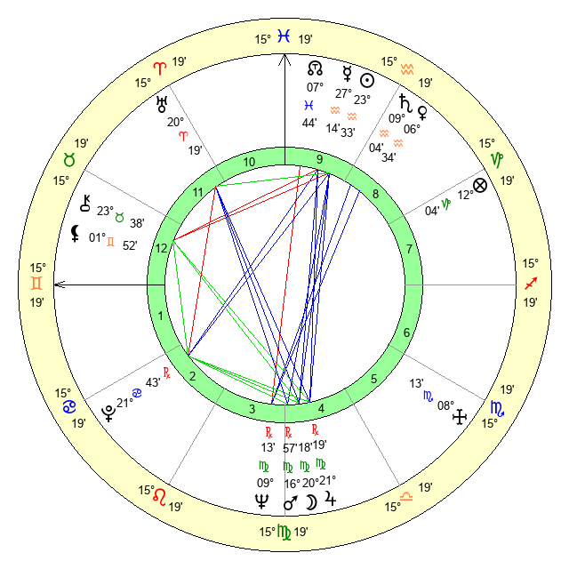 | Neptune | 9 Virgo 13 | 28 Pisces 19 | 7 Virgo 23 |