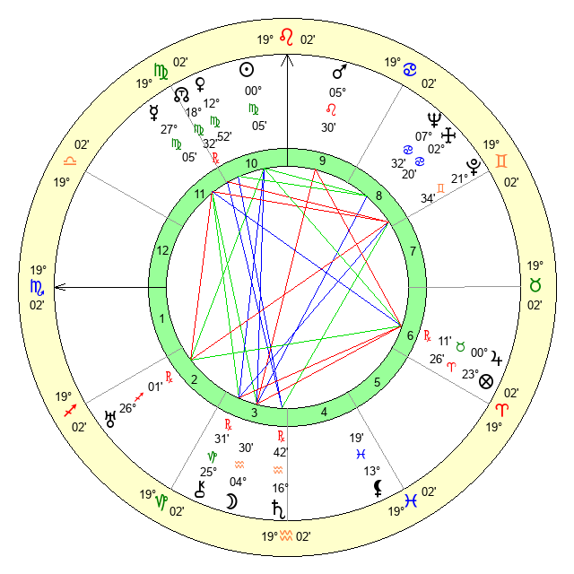| Sun | 0 Virgo 6 | 0 Virgo 49 | 0 Capricorn 27 |