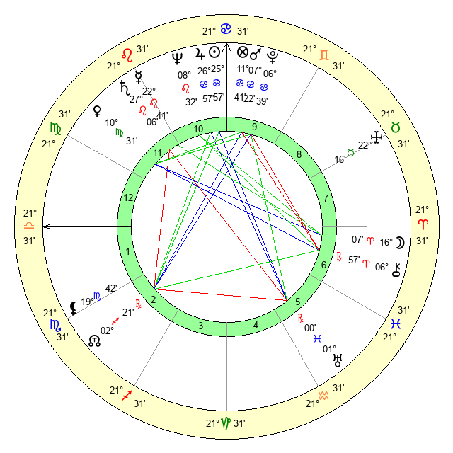 | Sun | 25 Cancer 57 | 27 Cancer 16 | 9 Scorpio 13 |