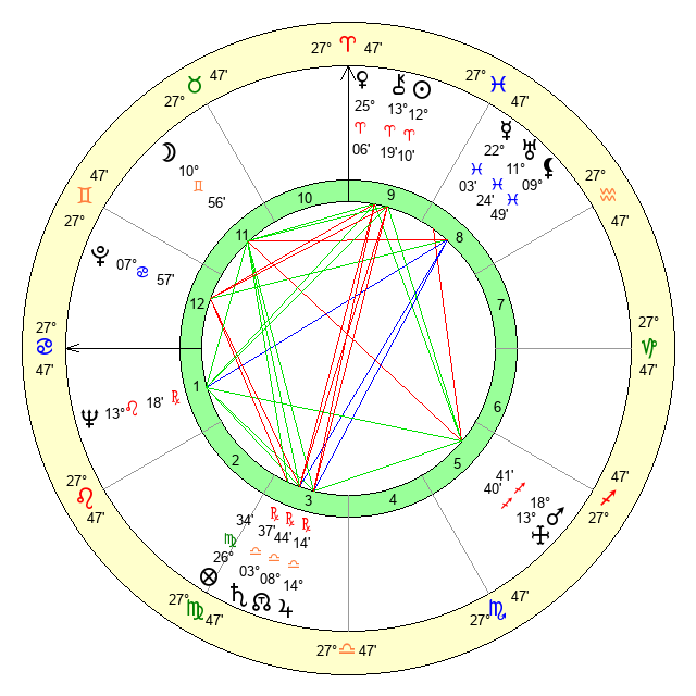 | Pluto | 7 Cancer 57 | 3 Aquarius 34 | 9 Cancer 52 |