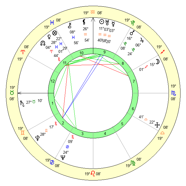 | Saturn | 27 Taurus 51 | 17 Pisces 22 | 7 Gemini 26 |