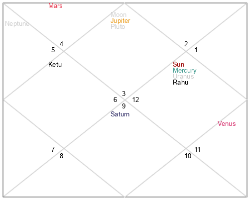 | Neptune | 3 Virgo 35 | 29 Pisces 53 | 3 Virgo 33 |