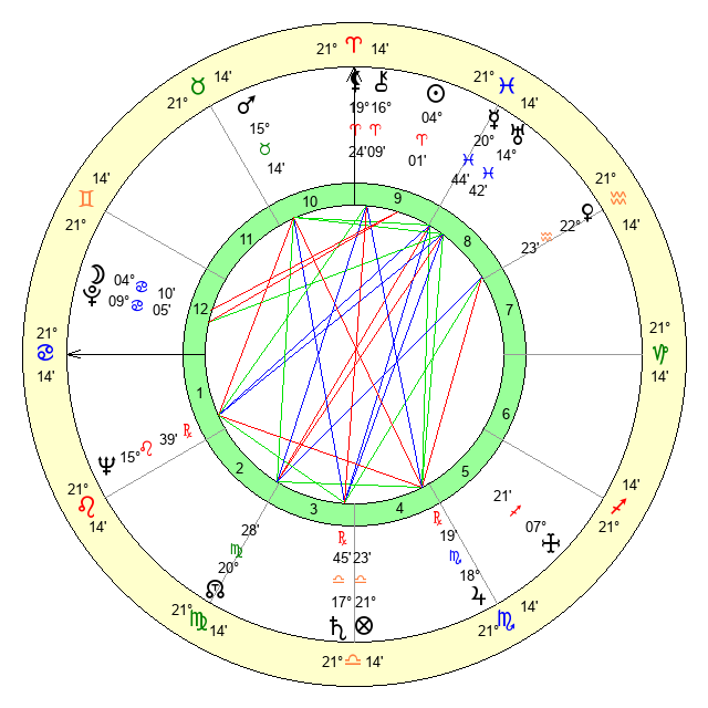 | Moon | 4 Cancer 5 | 14 Aquarius 24 | 8 Aries 33 |