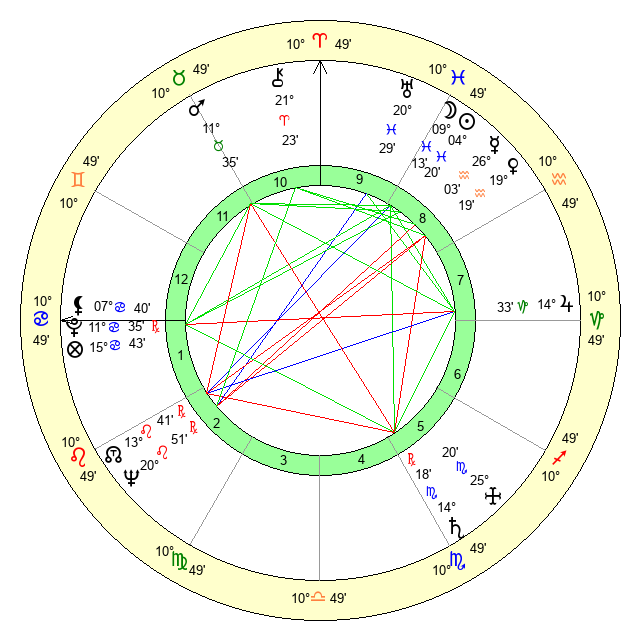 | Saturn | 14 Scorpio 52 | 19 Pisces 57 | 9 Scorpio 22 |