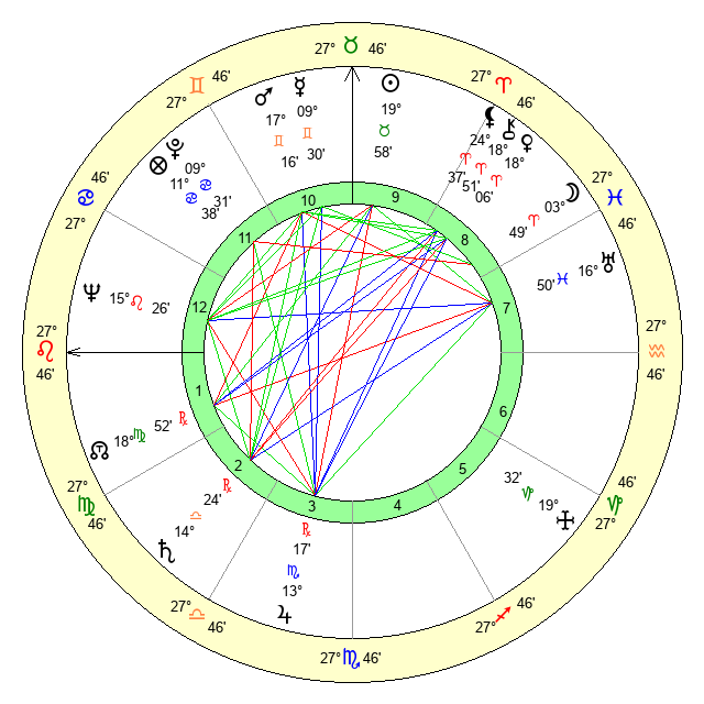 | Moon | 3 Aries 45 | 10 Scorpio 19 | 29 Sagittarius 29 |