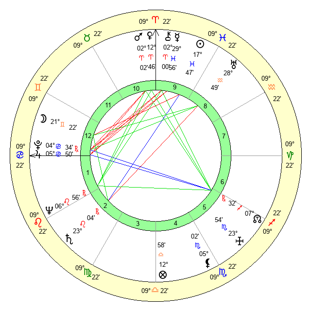 | Moon | 21 Gemini 25 | 23 Cancer 0 | 29 Aries 40 |