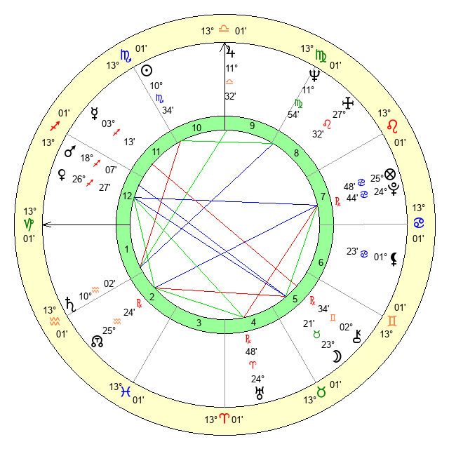 | Neptune | 11 Virgo 54 | 29 Pisces 44 | 11 Virgo 43 |