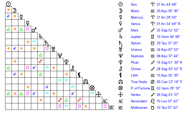 Mercury | 21 Aries 29 | 1 Aries 3 | 9 Gemini 48 |