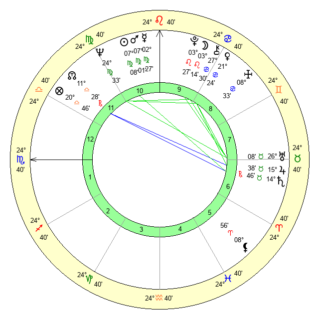 | Mercury | 2 Virgo 27 | 24 Leo 39 | 12 Scorpio 36 |