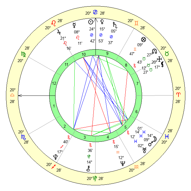 | Saturn | 5 Cancer 33 | 1 Aries 48 | 8 Cancer 11 |