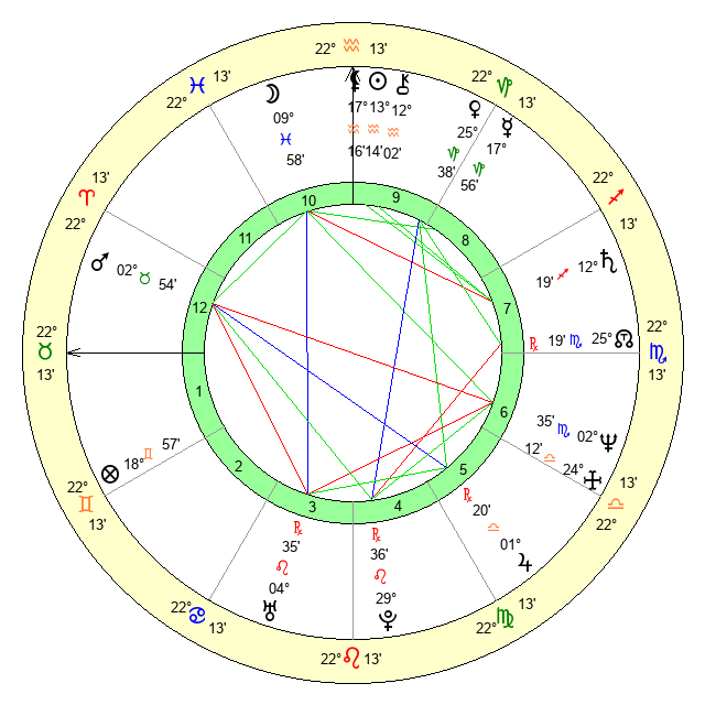 | Sun | 13 Aquarius 14 | 13 Aquarius 45 | 21 Aries 11 |
