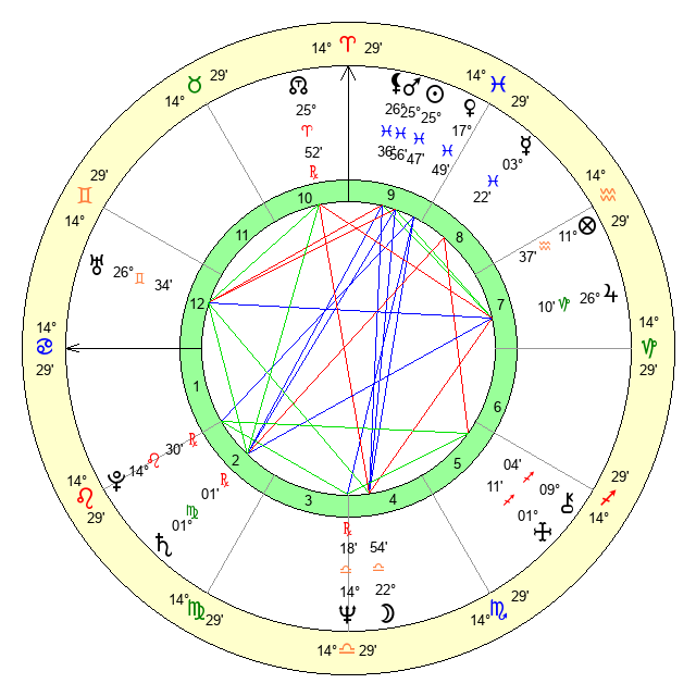 | Mars | 25 Pisces 56 | 19 Cancer 24 | 23 Taurus 18 |