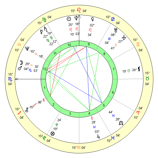 | Moon | 29 Libra 29 | 28 Gemini 39 | 23 Cancer 30 |