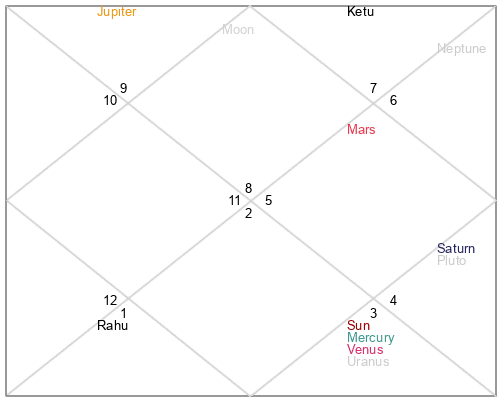 | Ketu | 11 Scorpio 50 | 22 Virgo 33 | 7 Scorpio 45 |