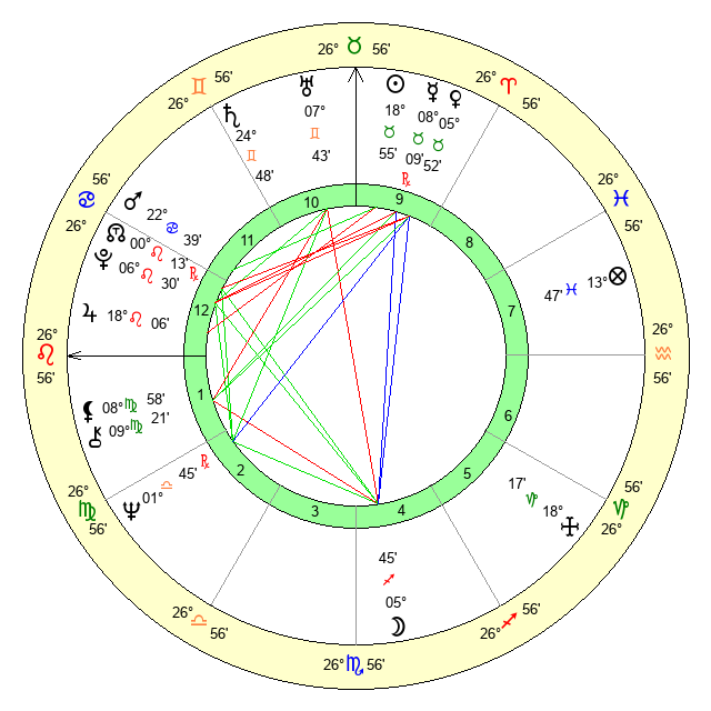 | Jupiter | 17 Leo 55 | 23 Gemini 9 | 0 Virgo 36 |