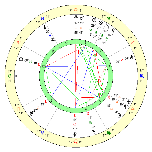 | Saturn | 5 Virgo 43 | 16 Pisces 5 | 0 Virgo 25 |