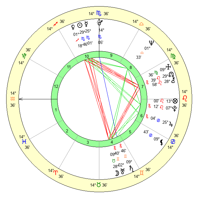 | Pluto | 7 Leo 13 | 1 Aquarius 44 | 5 Leo 42 |