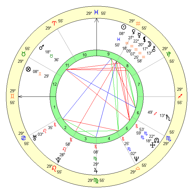 | Moon | 17 Aquarius 20 | 4 Pisces 55 | 10 Leo 44 |
