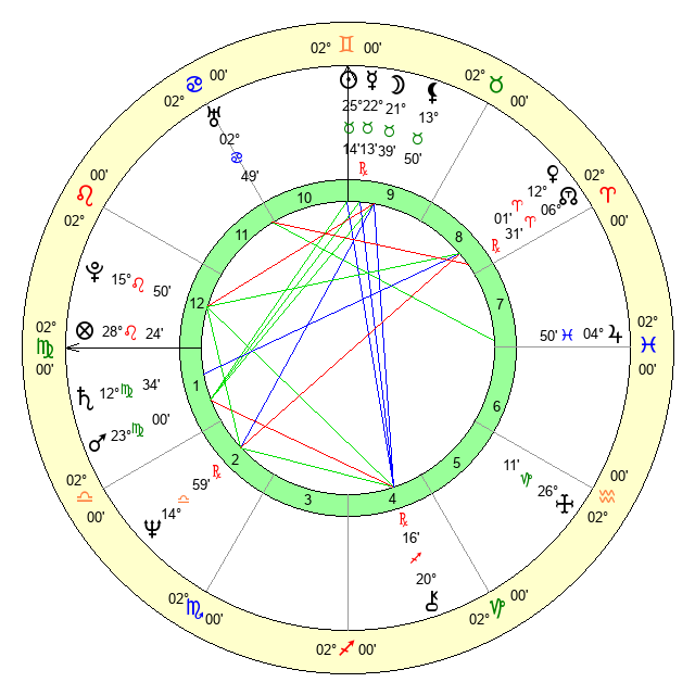 | Saturn | 13 Virgo 7 | 29 Pisces 13 | 17 Virgo 33 |