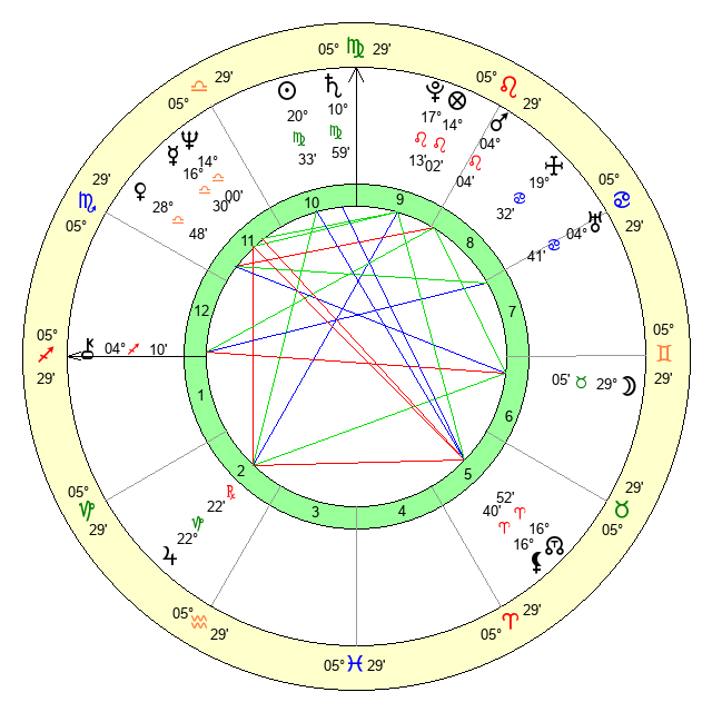 | Saturn | 11 Virgo 27 | 28 Pisces 58 | 19 Virgo 2 |