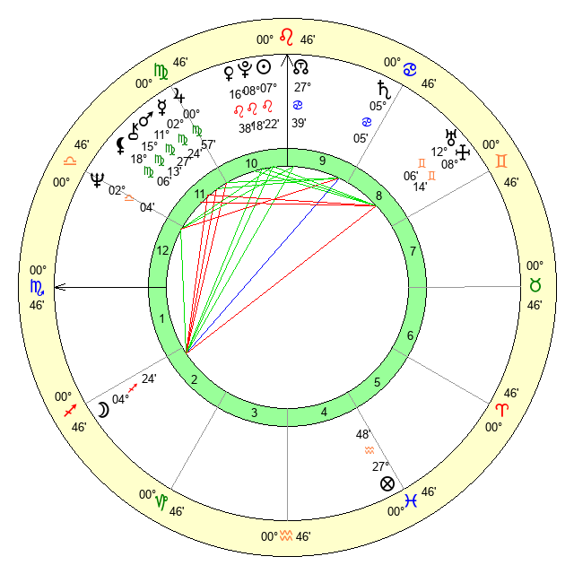 | Mercury | 2 Virgo 24 | 9 Leo 57 | 25 Libra 22 |