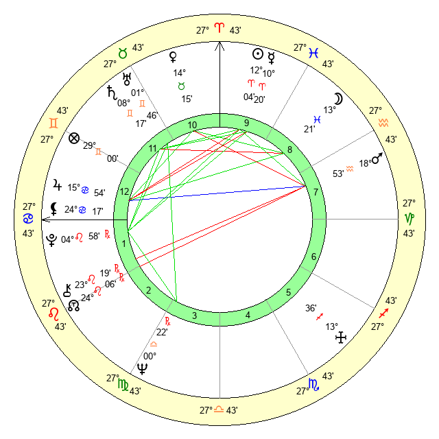 | Sun | 12 Aries 5 | 13 Aries 12 | 1 Cancer 21 |