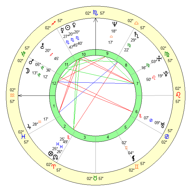 | Moon | 13 Capricorn 4 | 9 Virgo 1 | 0 Libra 7 |