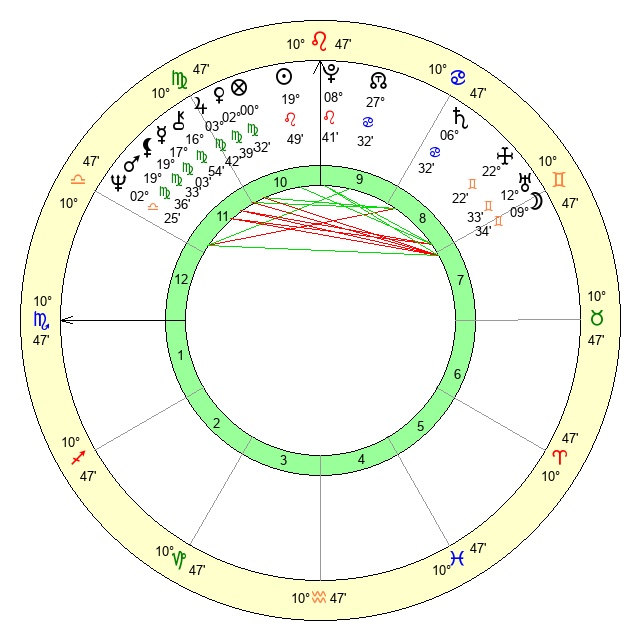 | Venus | 2 Virgo 40 | 14 Cancer 37 | 12 Sagittarius 13 |