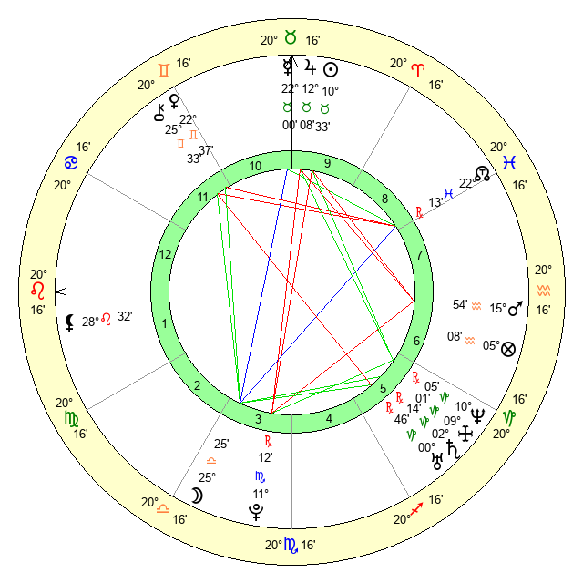 | Moon | 25 Libra 28 | 21 Gemini 21 | 8 Pisces 49 |