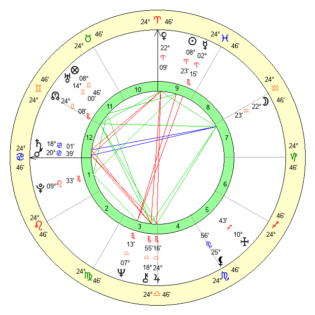 | Neptune | 7 Libra 13 | 29 Pisces 58 | 5 Libra 50 |