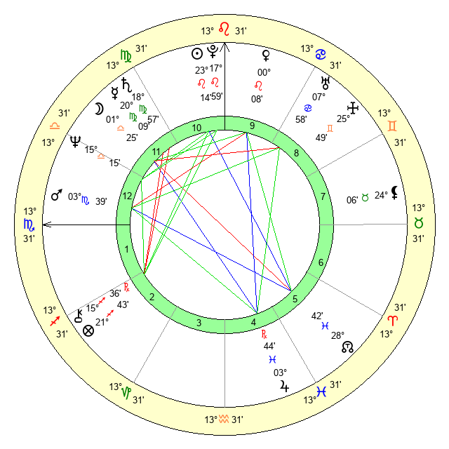 | Sun | 23 Leo 14 | 24 Leo 5 | 6 Scorpio 42 |