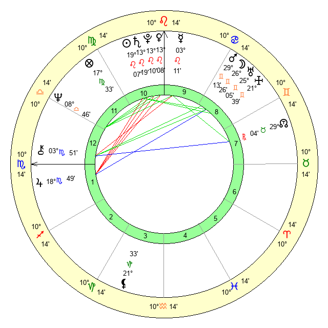 | Venus | 13 Leo 9 | 14 Cancer 37 | 20 Scorpio 8 |