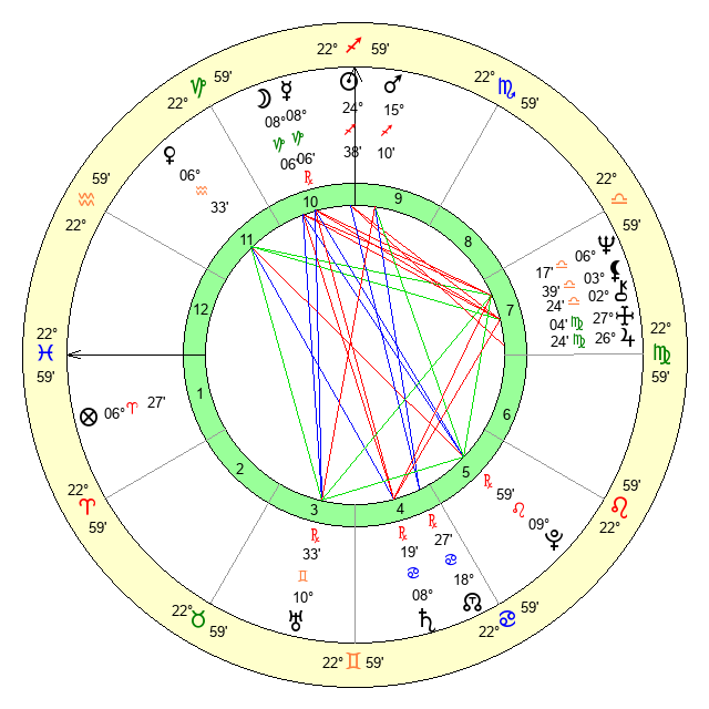 | Neptune | 6 Libra 18 | 29 Pisces 22 | 5 Libra 34 |