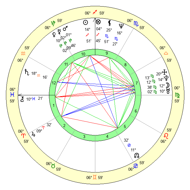 | Moon | 12 Virgo 38 | 23 Cancer 58 | 11 Sagittarius 28 |