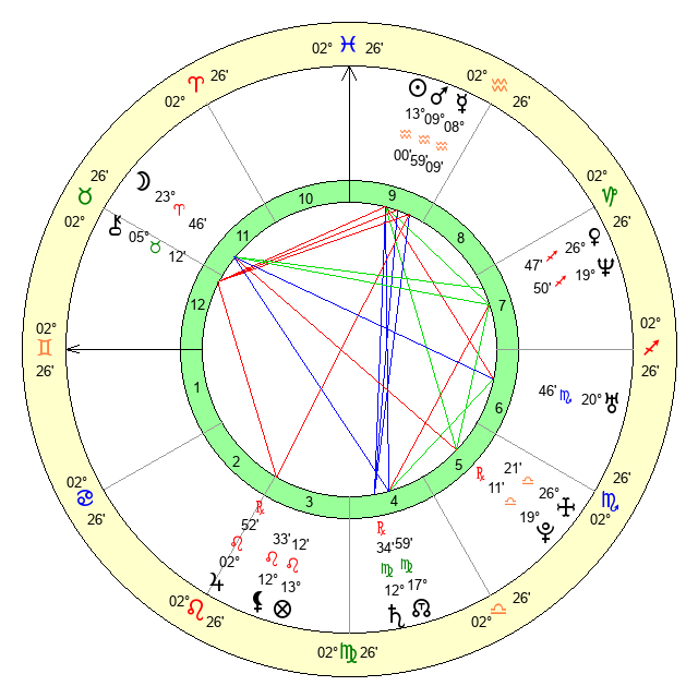 | Moon | 23 Aries 43 | 5 Aries 46 | 16 Sagittarius 19 |