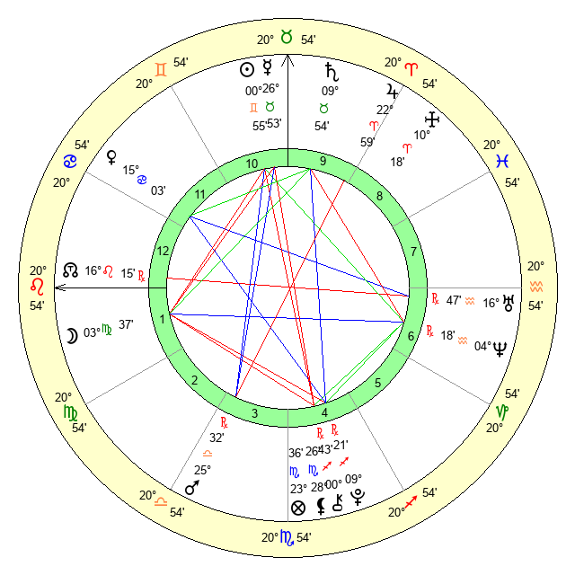 Jupiter | 23 Aries 4 | 25 Gemini 53 | 28 Aries 14 |