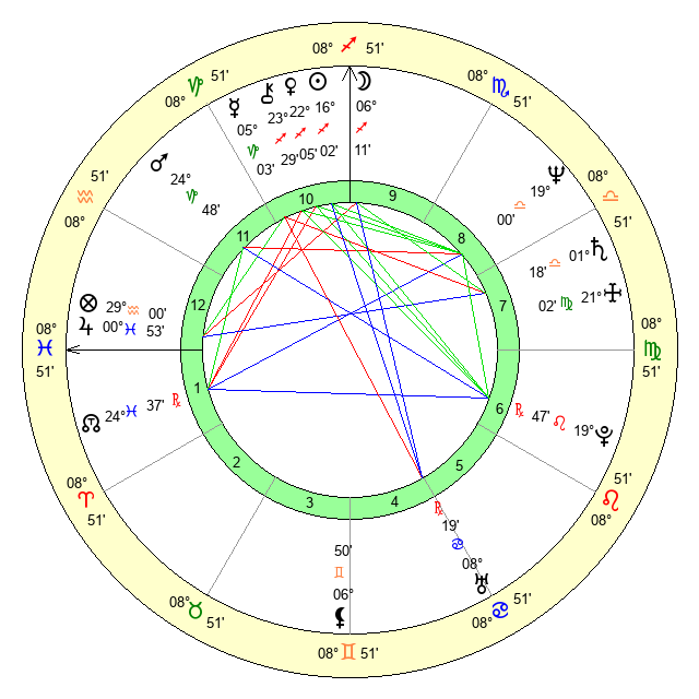 | Moon | 6 Sagittarius 14 | 8 Leo 12 | 0 Virgo 12 |