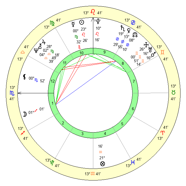 | Sun | 23 Leo 26 | 24 Leo 5 | 11 Scorpio 55 |