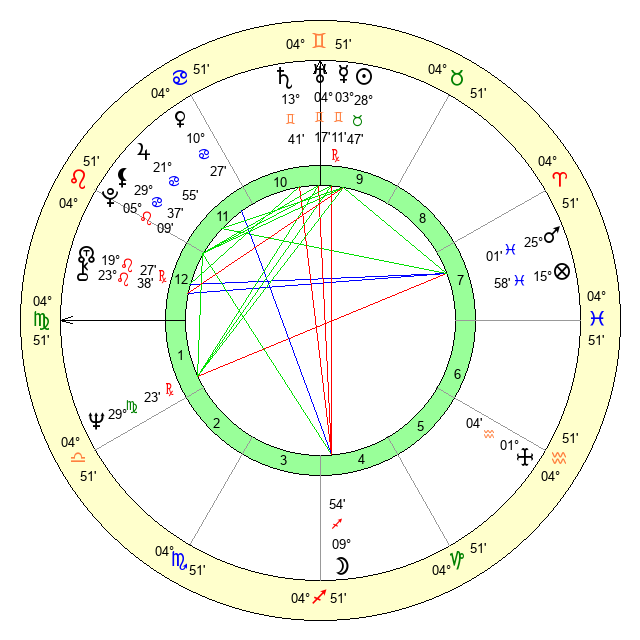 | Saturn | 13 Gemini 58 | 29 Pisces 33 | 23 Gemini 52 |
