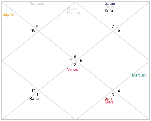 | Ketu | 15 Scorpio 34 | 21 Virgo 55 | 13 Scorpio 27 |